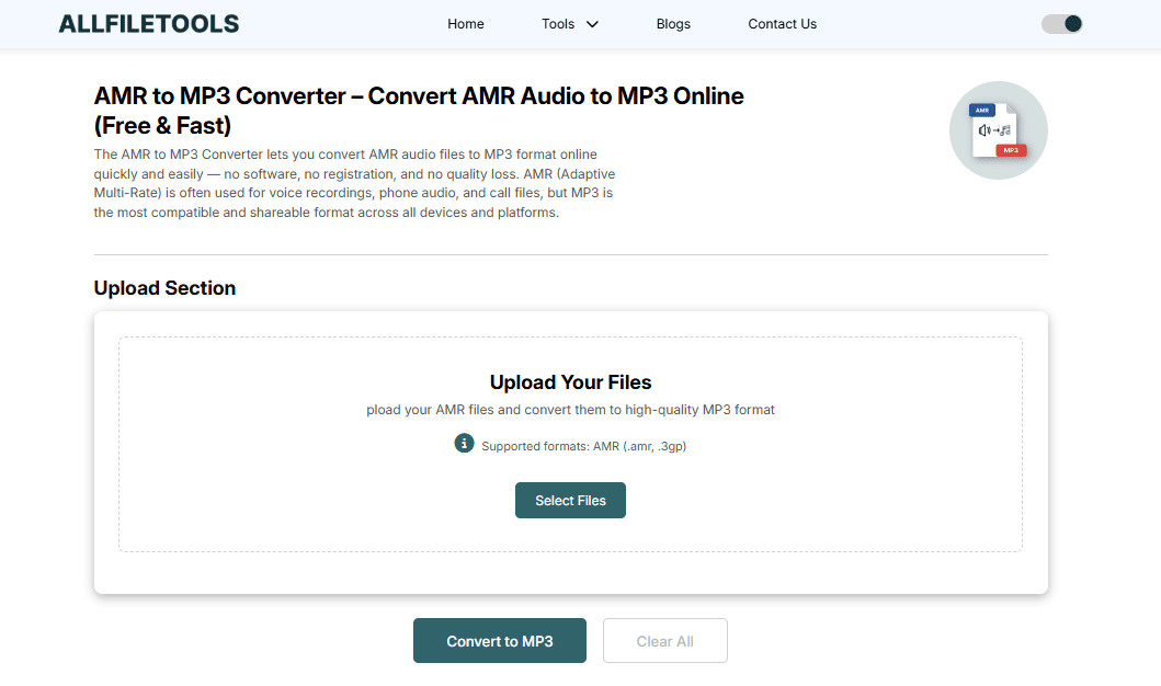 Converting AMR files to MP3 doesn’t have to be complicated. With AllFileTools AMR to MP3 Converter, you get a free, fast, and secure online tool that works across devices and platforms. Whether you’re a student, musician, developer, or general user, this tool ensures your audio files are compatible, high-quality, and ready for sharing or editing.