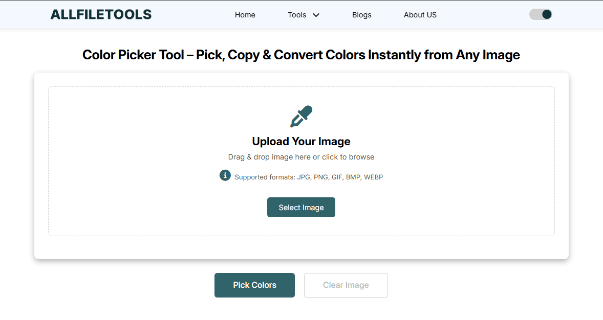 Access the tool online at AllFileTools Color Picker. The interface is user-friendly, requiring no technical skills.