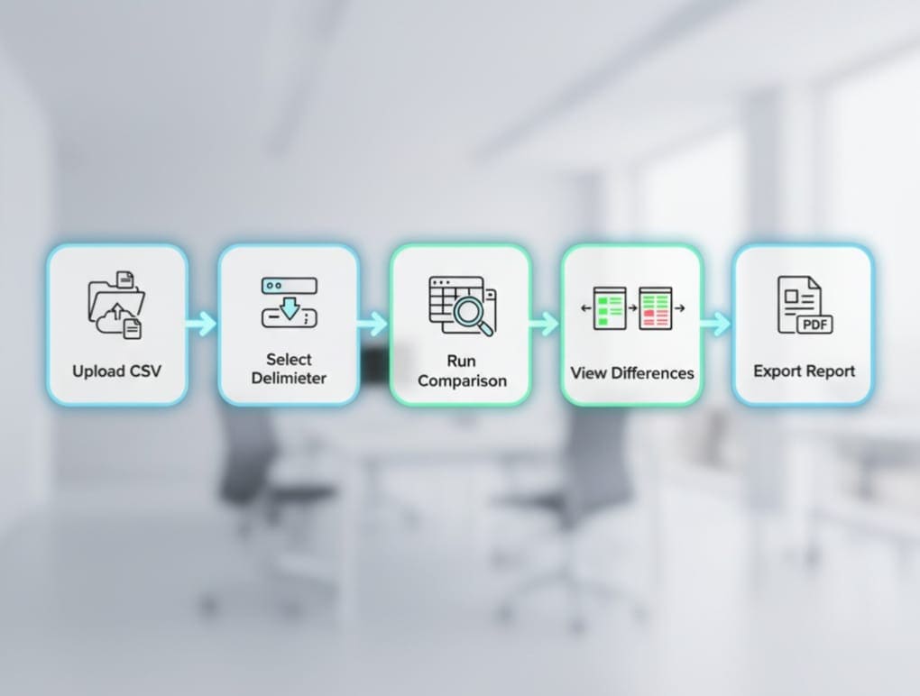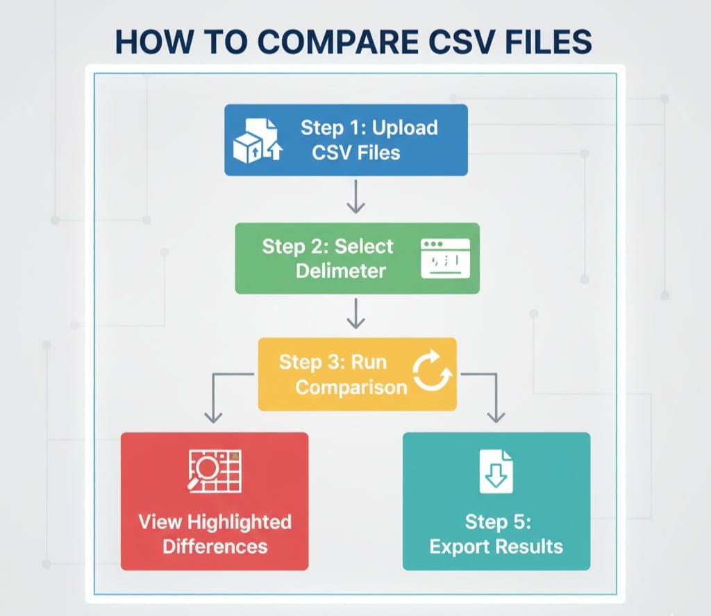 Not all CSV files use commas. Some files may use semicolons, tabs, or pipes as delimiters. The tool allows you to choose your delimiter, ensuring accurate comparisons.