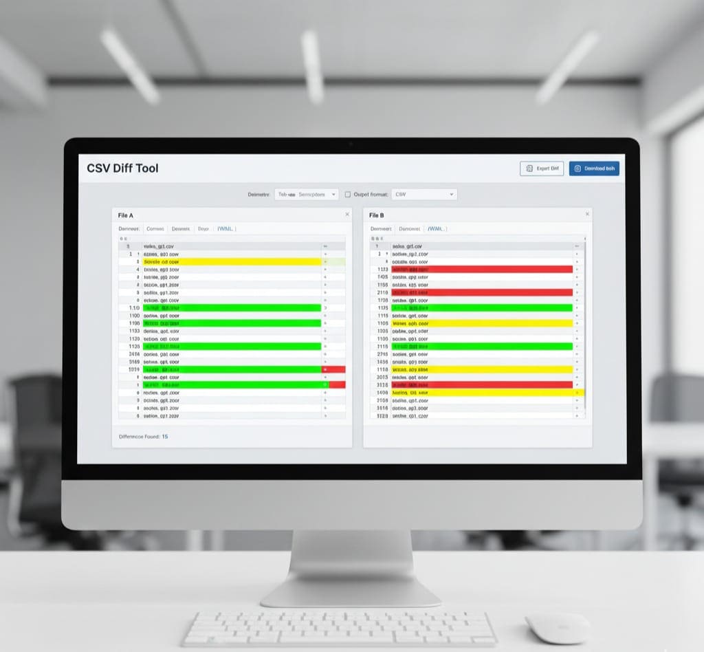 A CSV Diff Tool is an online utility that compares two CSV files and highlights the differences in a structured and readable format.