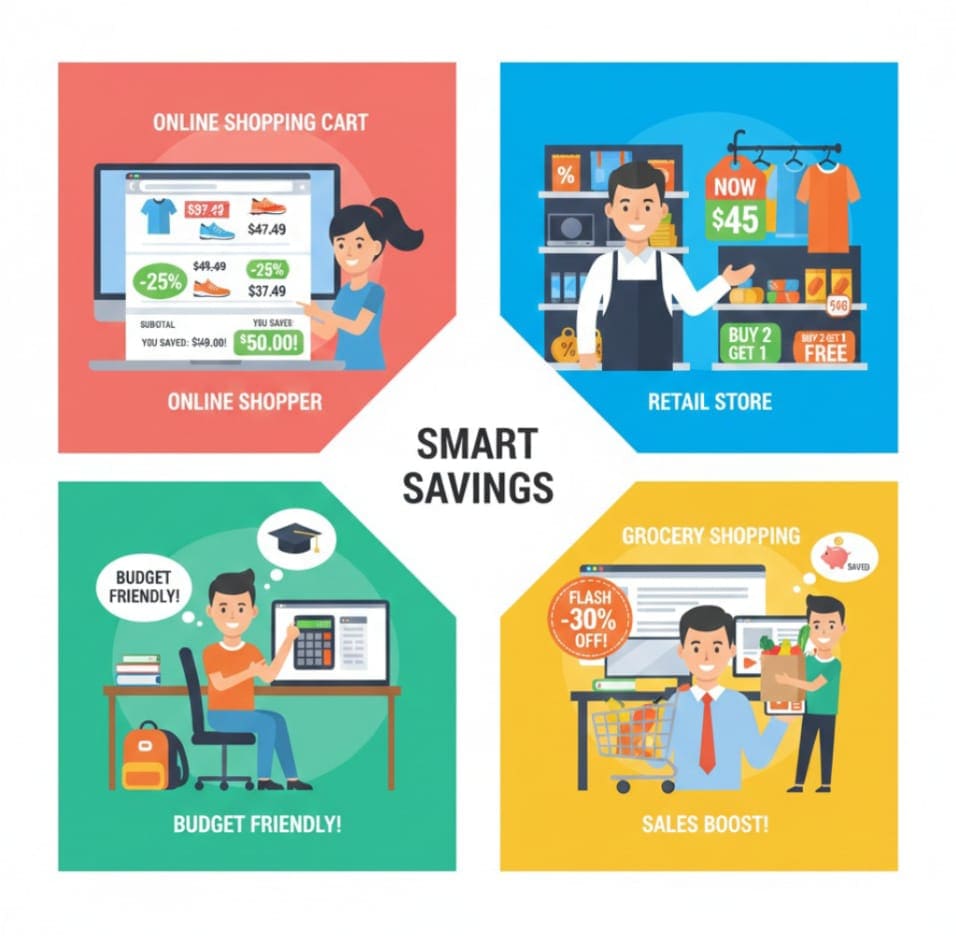 Coupon Codes & Promo Codes – Entered during checkout for automatic savings.