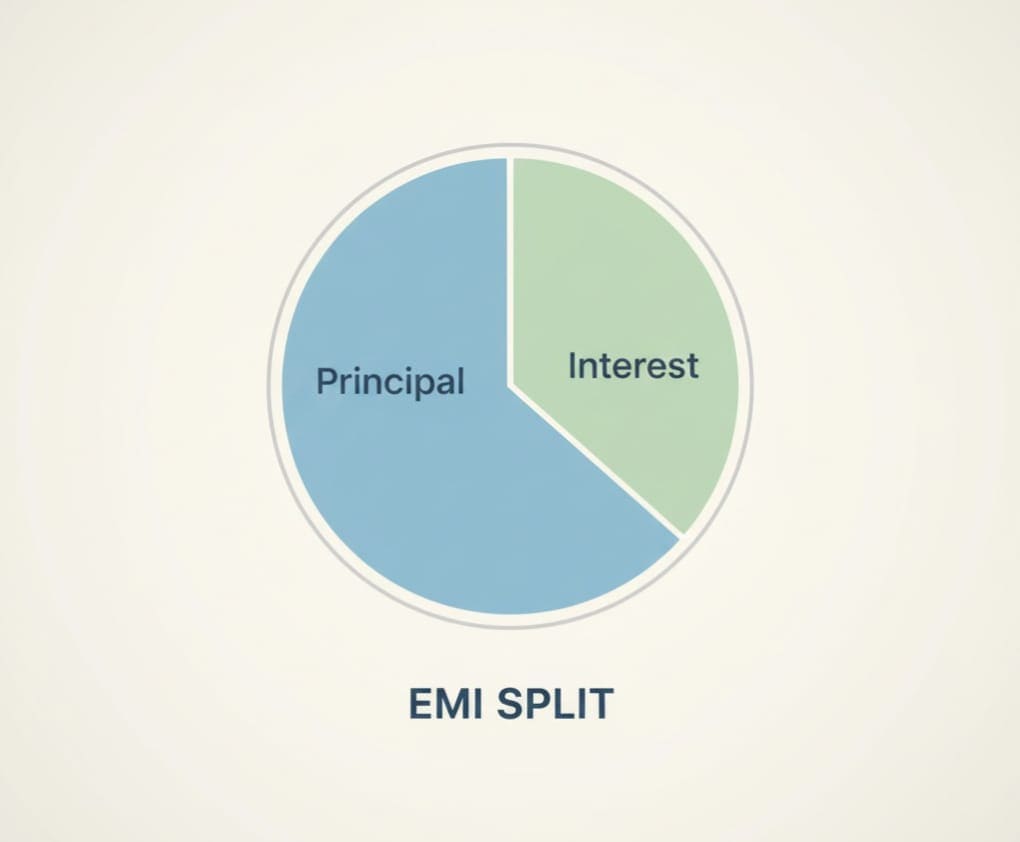 EMI stands for Equated Monthly Installment. It is the fixed payment amount you pay every month to a lender until your loan is fully repaid. EMIs are widely used for home loans, car loans, personal loans, and other types of financing. Each EMI includes two components: principal and interest.