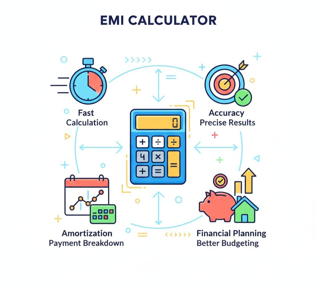 Our Free EMI Calculator Tool offers multiple benefits for users like students, salaried professionals, loan seekers, and financial planners. Here are the key advantages:
