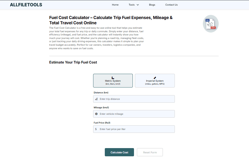 This is where a Fuel Cost Calculator becomes incredibly useful. Instead of guessing how much fuel you’ll need or how much money you’ll spend, you can calculate everything in advance — total fuel cost, mileage impact, and overall travel expenses — all in a few seconds.
