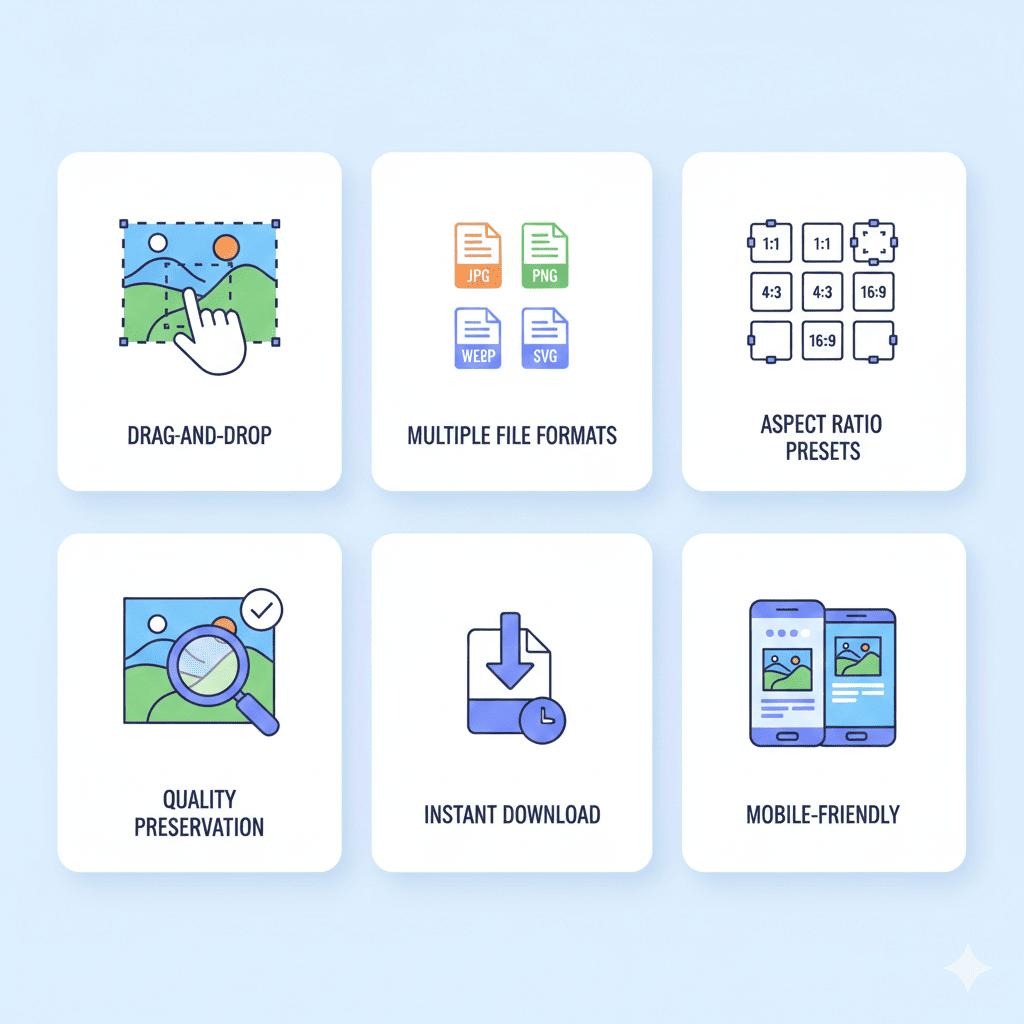 Privacy-Safe – Cropping is done in-browser; your images are secure.