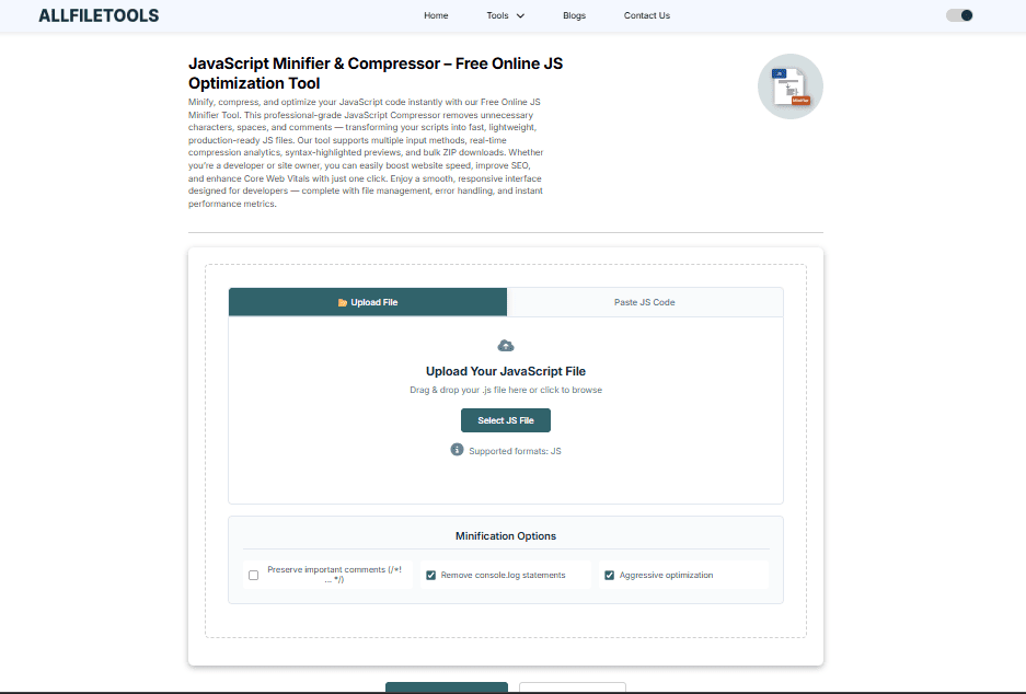 In today’s fast-paced digital world, website performance is everything. Users expect pages to load instantly, and even a delay of a second can lead to higher bounce rates and lost revenue. One of the key elements that affect website speed is JavaScript file size. Large, unoptimized JS files can significantly slow down your website, making it essential for developers, website owners, and frontend engineers to optimize their scripts. That’s where JavaScript Minifiers and Compressors come into play.