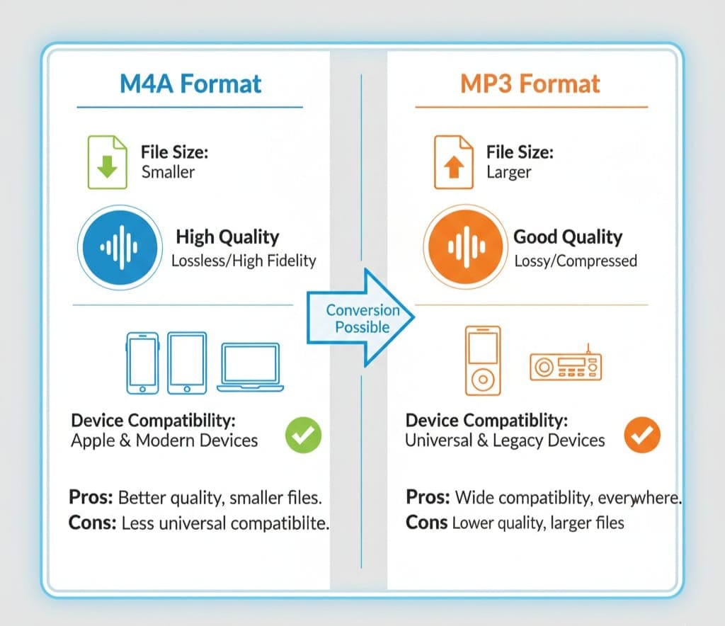 Smaller File Sizes – While M4A is compressed, MP3 often offers even smaller sizes at similar quality.