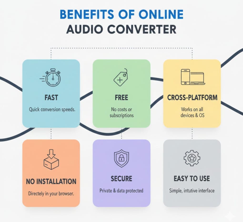 Using an online converter like AllFileTools M4A to MP3 Converter has multiple benefits over traditional software: