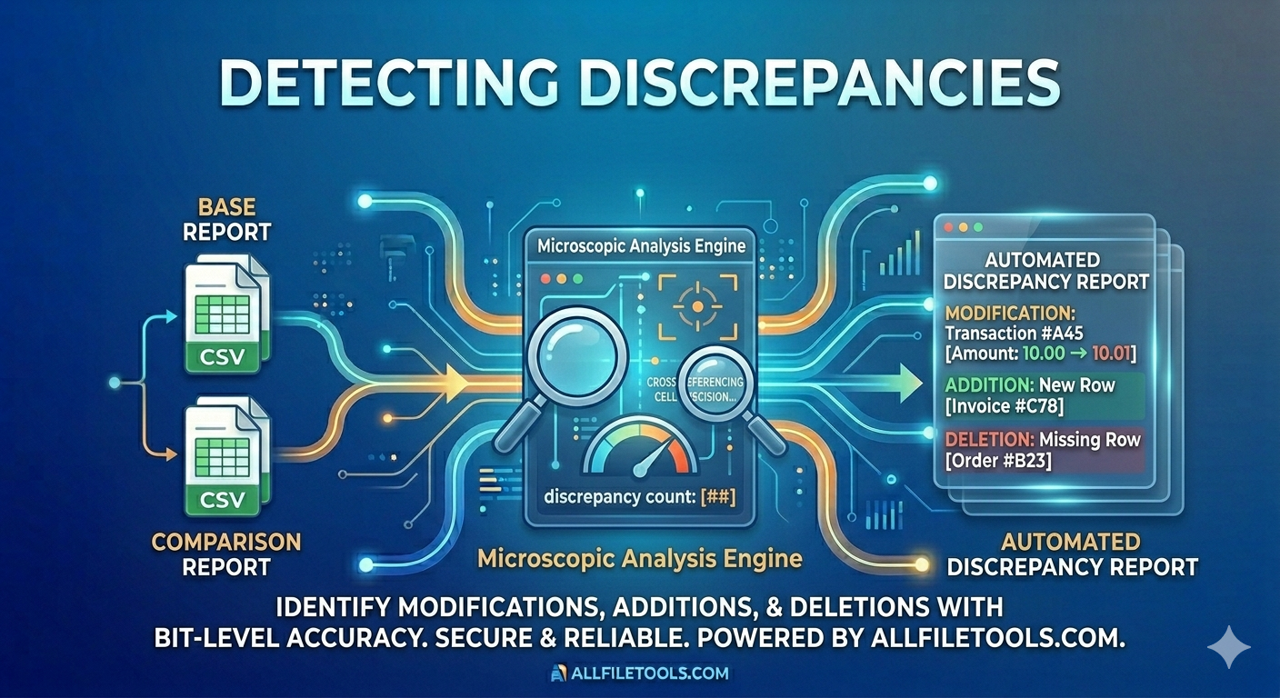 For accountants and financial analysts, the challenge isn't just seeing the data, it's identifying what changed between two versions of the same report. This is where Financial Forensics meets digital efficiency. Using the CSV Diff Tool on AllFileTools.com, you can automate the detection of discrepancies and generate audit-ready documentation in seconds.