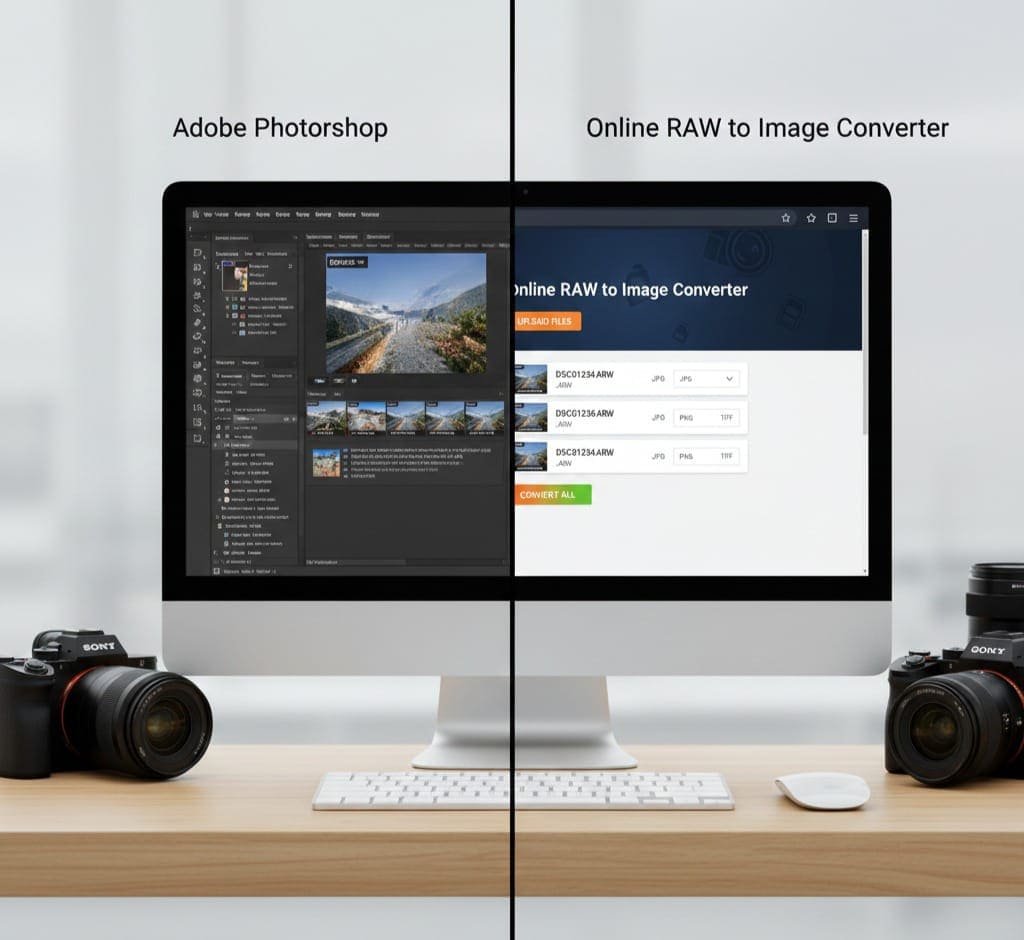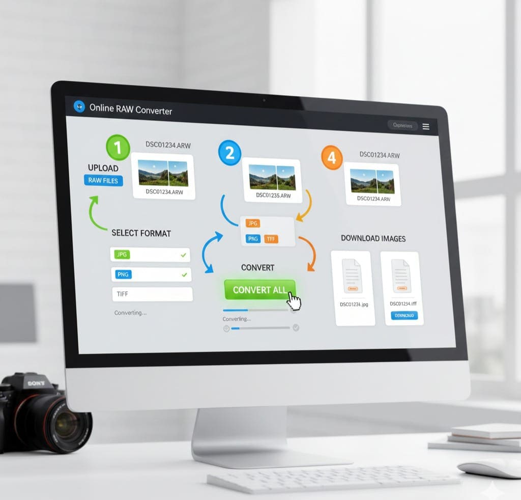Technical Note: Working with RAW files requires specialized software, such as Adobe Lightroom, Photoshop, Capture One, or dedicated RAW converters. While professional software offers advanced features, it may not always be accessible or convenient, especially if you need a quick conversion online.