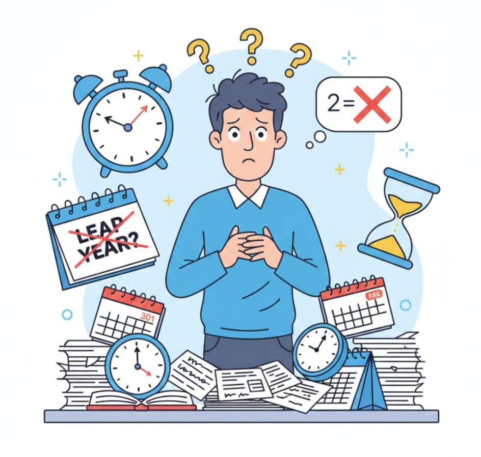 Before computers, people used sticky notes, calendars, or mental math to calculate time differences. That led to mistakes like: