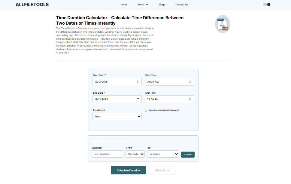 📌 Try it now: https://www.allfiletools.com/time-duration-calculator/