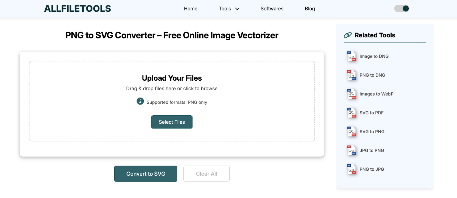 - Navigate to the PNG to SVG page.